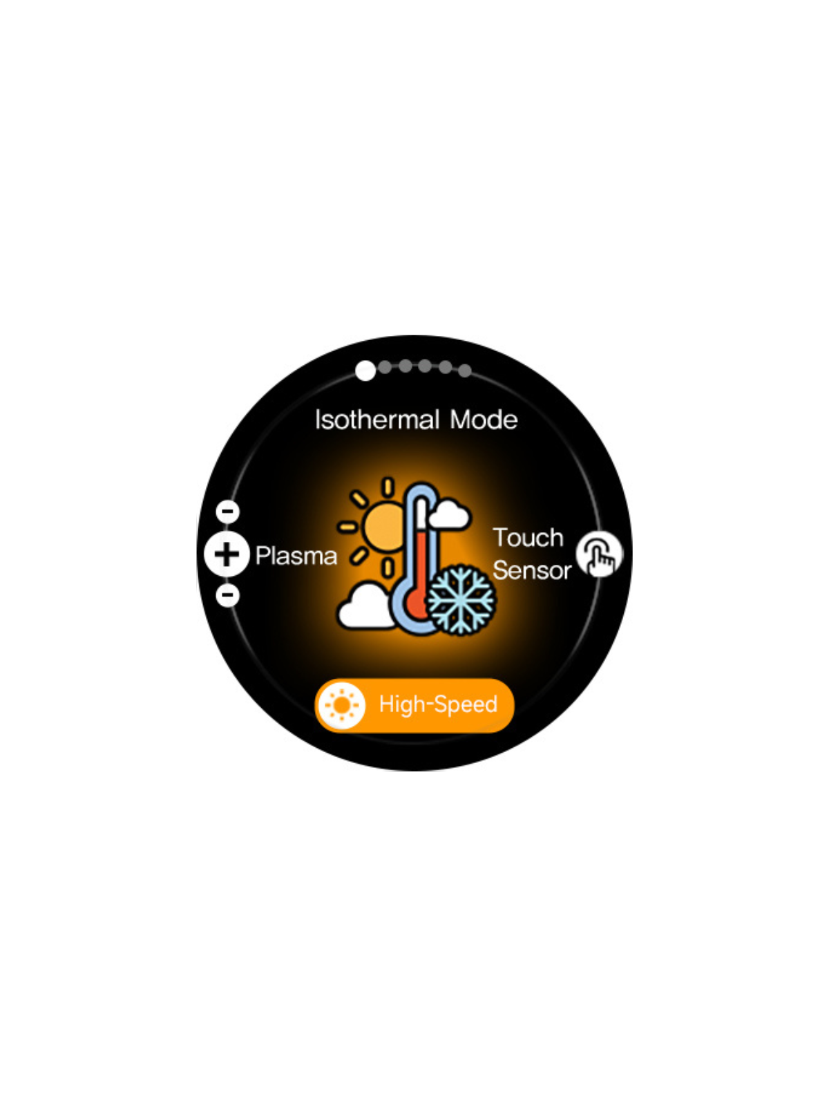 Volle Kontrolle auf einen Blick. Hier siehst du die Temperatur in Echtzeit und wechselst intuitiv zwischen den 6 Pflege-Modi (z.B. Baby, Haustier oder Isotherm).